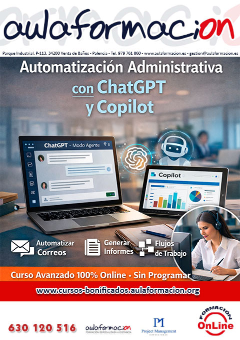 Este curso avanzado 100 % online está diseñado para aprender automatización de procesos administrativos de forma práctica, aplicando automatización con ChatGPT, Copilot en modo agente y flujos híbridos seguros. El enfoque no es teórico: aprenderás a diseñar, simular y gobernar agentes administrativos inteligentes, alineados con la normativa europea y las buenas prácticas de seguridad. Si buscas ir más allá de la ofimática tradicional y dar el salto a la automatización inteligente, este curso te ofrece una visión completa, actualizada y aplicada al entorno real de trabajo.